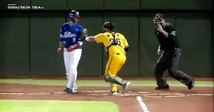 本壘板前彈跳球 後來改判為界外 最終林益全還是被三振